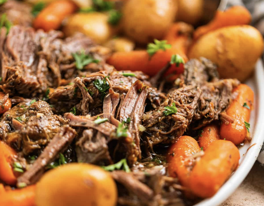 Prep Time: 15 mins Cook Time: 8 hrs Servings: 6 Ingredients cooking spray 1 onion, sliced 1 (2 1/2 pound) boneless beef chuck roast salt and ground black pepper to taste ¼ cup all-purpose flour 1 (1.2 ounce) package dry beef gravy mix 1 (1 ounce) package ranch dressing mix 1 (.7 ounce) package dry Italian-style salad dressing mix ½ cup water, or as needed 5 whole peeled carrots […]