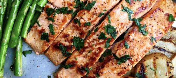 Ingredients:2lbs. Salmon, Cut Into 4 Filets, Skin Removed, Room TemperatureSalt Pepper1 LemonOlive Oil1 Bunch Asparagus4 Red Potatoes, cut in ¼” thick slices2 Tbsp. Rosemary, choppedItalian Parsley ChoppedFlakey Sea SaltCrushed Red Pepper Instructions:Heat olive oil in a large non-stick pan over medium-high heat. Pat your salmon dry, squeeze lemon over all slices, and season with salt and […]