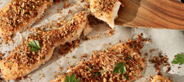 This healthy recipe comes together in under 20 minutes. Ingredients ½ c almonds* ¼ c grated parmesan cheese* 1 Tbsp chopped fresh parsley* 2 tsp lemon zest* 1 lb. salmon filets* ½ tsp kosher salt ½ tsp ground pepper 1 Tbsp Dijon mustard**Ingredient available to add to your Imperfect box Instructions Preheat oven to 350°. […]