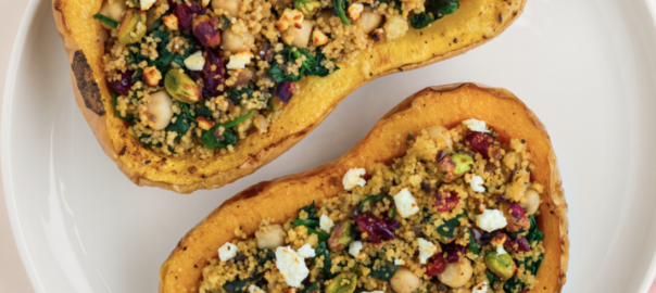Ingredients (makes 2 servings): 1 medium butternut pumpkin 3 tsp vegetable oil sea salt and ground black pepper, to taste 70g couscous 200ml salt-reduced vegetable stock ½ small brown onion, finely diced 1 garlic clove, crushed ½ tsp dried oregano ½ tsp paprika 2 large handful baby spinach leaves 125g tinned chickpeas, drained and rinsed […]
