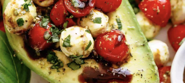 Ingredients 1/2 cup grape or cherry tomatoes, halved 4 oz (120g) baby mozzarella balls (bocconcini) 2 tablespoons basil pesto homemade or store bought) 1 teaspoon minced garlic 1/4 cup olive oil Salt and pepper to season 2 ripe avocados peeled, seeded and halved Fresh basil leaves to serve (optional) 2 tablespoons balsamic glaze reduction to drizzle 2 tablespoons fresh basil chopped Instructions Combine tomatoes, mozzarella balls, pesto, garlic, olive oil, salt and pepper in a bowl. […]