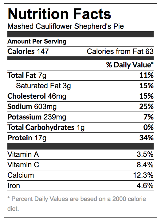 Spoon meat mixture into the bottom of a casserole dish and cover with prepared mashed cauliflower.