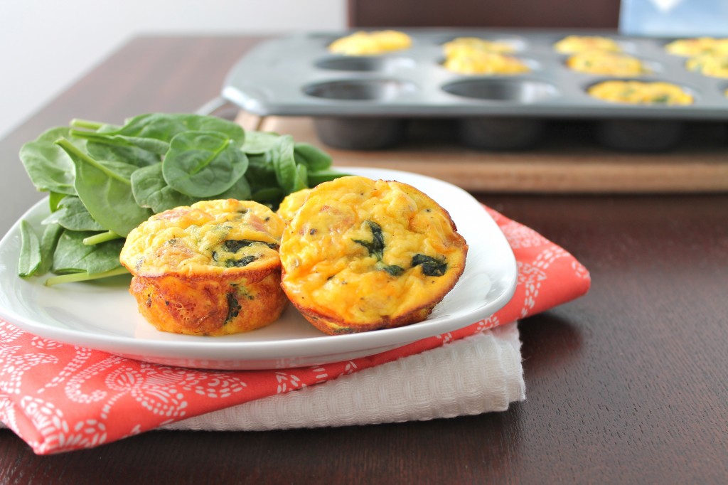 Evenly divide the egg mixture into a greased muffin pan. Bake at 350°F for approximately 20 minutes or until eggs are set.