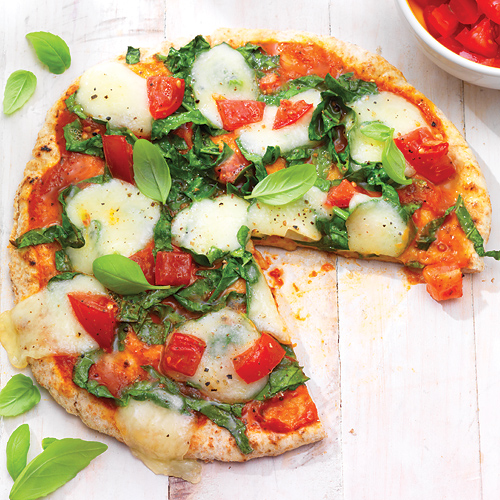 - Bake for 8 to 10 minutes, until greens are wilted and mozzarella is melted. Remove from oven, sprinkle with basil, dividing evenly, and serve immediately. If you’re enjoying 1 pizza, loosely wrap remaining pizza in aluminum foil or store in a sealable container for up to 2 days in refrigerator. Reheat in a warm oven or serve at room temperature.
