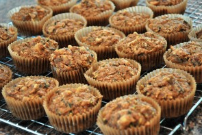 Preheat oven to 350 degrees, prepare your muffin tins by lightly greasing or use liners. Mix the milk and flax meal in a small bowl, mix vigorously and then add the vinegar. Set aside for it to curdle. In a large bowl combine the flour, baking powder, baking soda, salt and spices. Make a well in the center of the dry ingredients and add the milk mixture, oil, sucanat and vanilla. Mix and then fold in zucchini. Fill each muffin tin 2/3 full. Bake for 26 minutes. Cool for at least 20 minutes before removing from tin.